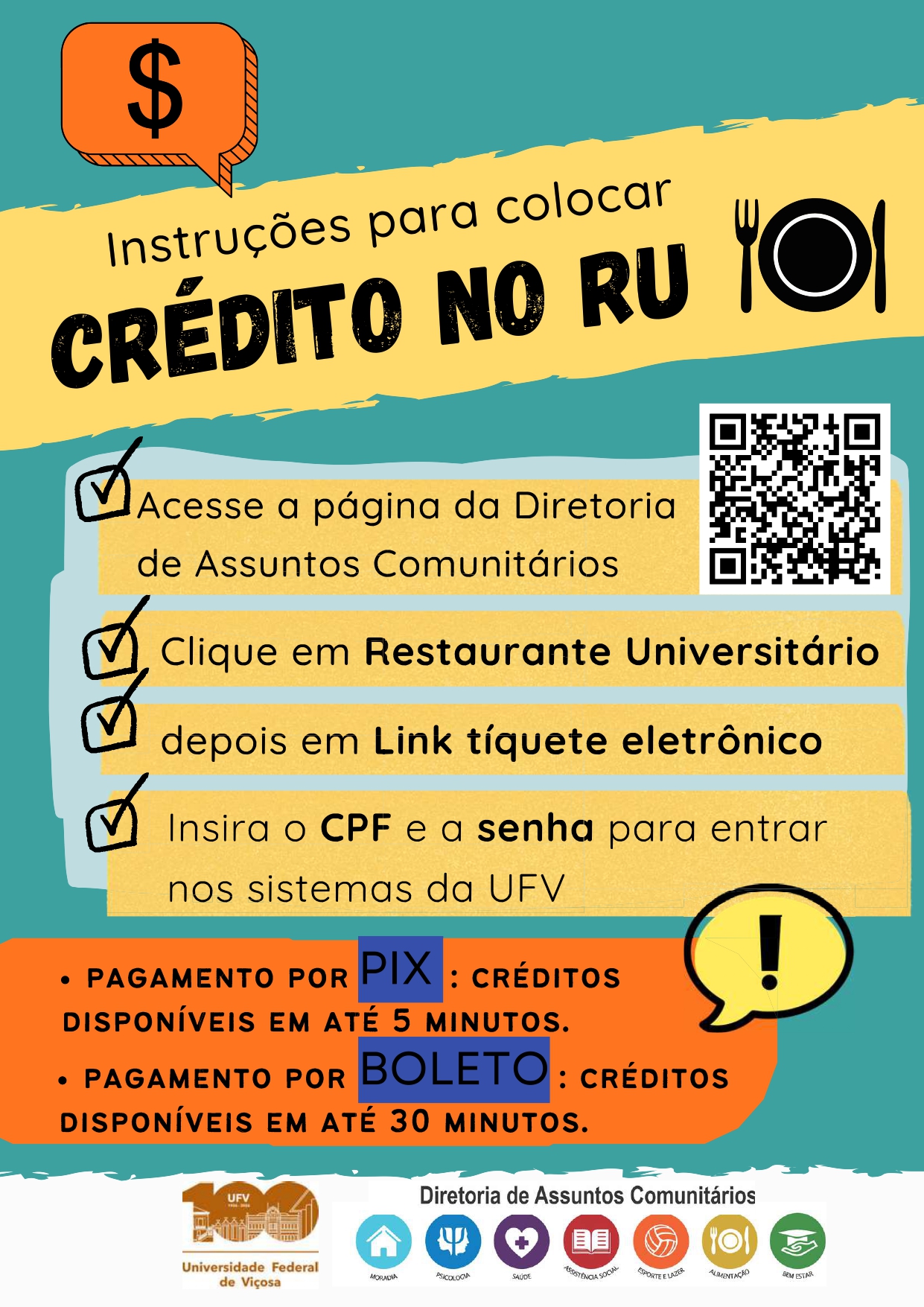 Instruções para comprar créditos no RU >Link Tíquete Eletrônico